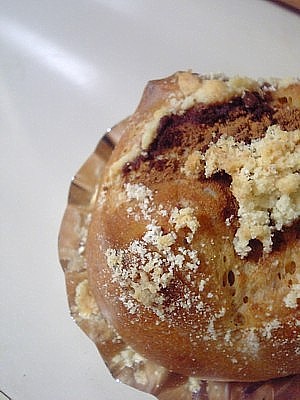 ヨーグルト酵母で、リッチ系パン。 気温が暖かくなったからか、釜伸びもすごくよかった 生地にインスタントコーヒーを入れて、 トッピングは黒糖で作ったシナモンシュガーと アーモンドプードルの入ったクランブルをダブル乗せ! シナモンとコーヒーの香りがめちゃいい感じ。 夜に焼いて、翌朝に食べたけど、ふんわりしっとりでおいしかった~。 ヨーグルト酵母はやっぱりオイシイ!