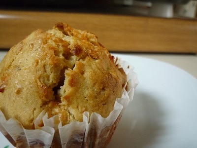 酵母生地にに、とろけるチーズとピーカンナッツ、くるみを 入れたほんのり甘いマフィン。 少し配合したコーングリッツが プチプチした食感で、良いアクセントに