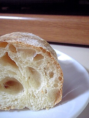 またまた、底割れ~ 原因は、綴じ目をしっかりつけるとかじゃなさそう。。 最終発酵不足?? 今回もしっかり捏ねて見たけど、 水分量が多めな為か、気泡はいい感じに入った クラムもしっとり系で、好きな感じ