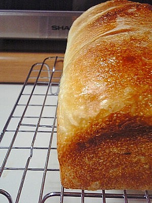 バケットと同じ配合で、食パン型(1.5斤)に 入れて焼いたもの。 発酵のタイミングなど、上手くいかなかった為、 釜伸びはイマイチ。。 かなりテキトーな作ってしまったけど、 その割には、しっとりと美味しくなってくれた 天然酵母で大きなものを焼くのは、難しいなぁぁ~。