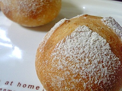 久々のリーン系パン!布取り成型もすっごく久しぶり あまりに久しぶりで、捏ね具合や水分などの感覚が無くなっていて、ものすごく適当なパンになってしまったちょっと水分量が多かったみたいなので、アーモンドプードルなんかを練りこんでみた。 焼き上がりに、アーモンドの存在はあまり感じられなかったけど、入ってないよりは粉臭さ(?)みたいなのが無くて、それなりにおいしかった