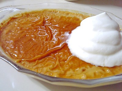 エスプレッソ入りのカラメルプリン。 カラメルを下に流して、その上にプリン液を流し込んだけれど、 焼き上がり後には、溶けて混ざってしまった でも、良くこがしたカラメルの苦味が全体に行き渡ってとってもおいしかった