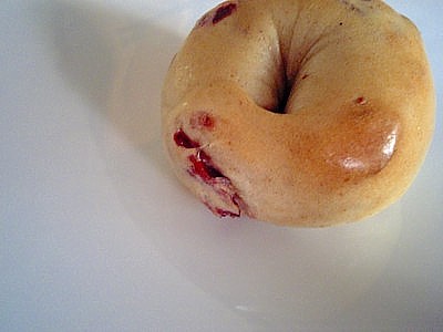 ライ麦をちょっと配合した生地に ドライチェリーとシナモンを混ぜ込んだベーグル。 気温が高くなってきたせいか、 いつもと同じ配合でも、ちょっと生地はゆるめ。 ドライチェリーは水でも出さなくても、 焼きあがったら、程よいしっとり感に