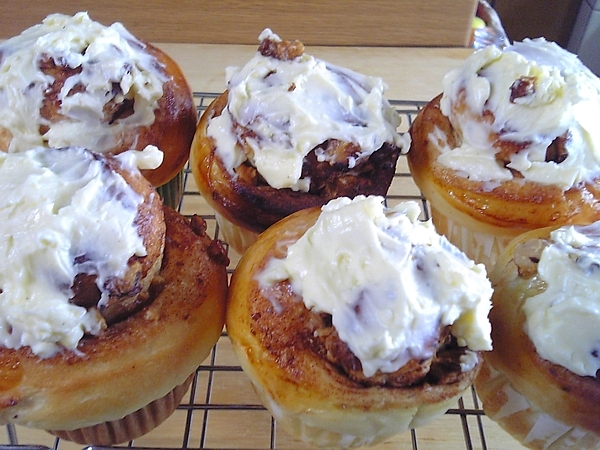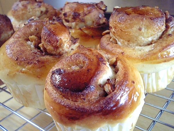 今回はe-パン工房さんのクリームパンの生地レシピを使ってシナモンロール。(+くるみ)