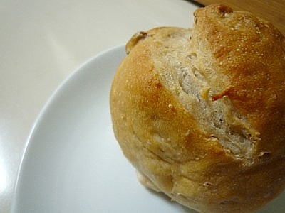 牛乳配合のソフトな生地に、 ローストした胡桃をたっぷり配合。 今回は釜伸びが良くって、 見た目のボリューム満点~~