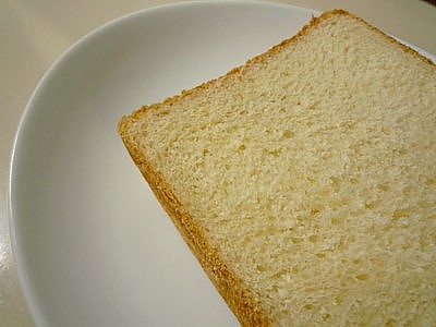 生クリームと牛乳でこねたソフトな角食パン 生クリームとメープルシロップでとってもしっとり~ 腰折れを懸念して、ちょっと焼きを深くしすぎたかな。。