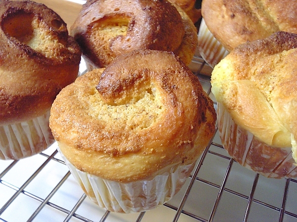 マフィン型で焼いたのだけれど、型に対して生地の容量が大きかったので、はみ出した。。ゴールデンヨットを使ったので、膨らみがいいのもあるかも。