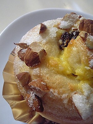 前日に作っておいたカスタードとラムレーズンを くるくる巻き込んで、生アーモンドを刻んだものと バニラシュガーをトッピング。 カスタード&トッピングの砂糖で甘いかな。。 と思ったけど、結構あっさり味。