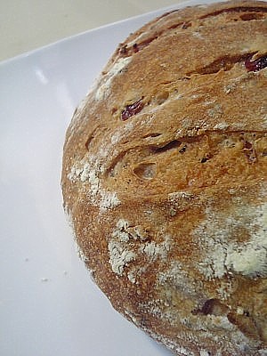 ドライクランベリーと紅茶を混ぜ込んだ カンパーニュ。 全粒粉を1割配合。 天然酵母らしいもっちり仕上がり